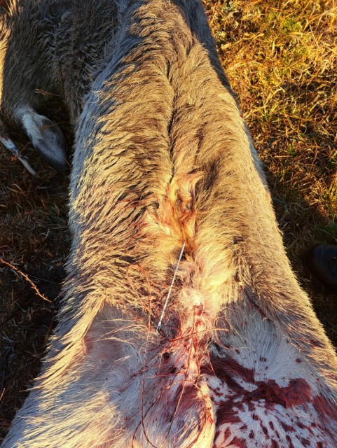 Drar du Rådyr, Hjort og Elg med deg hjem etter jakt i skog og mark? Da er denne nålen veldig praktisk. Med igjennsying av buken, hindrer du at skit, gjørme og annet rusk kommer inn i dyret ved transport ut av terrenget.