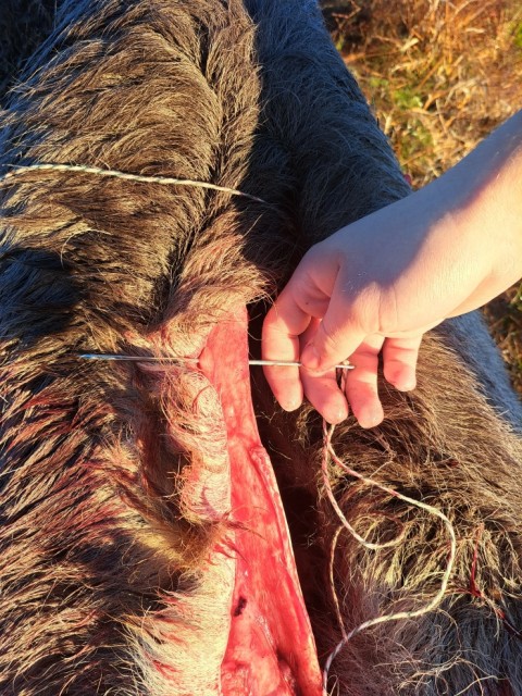 Drar du Rådyr, Hjort og Elg med deg hjem etter jakt i skog og mark? Da er denne nålen veldig praktisk. Med igjennsying av buken, hindrer du at skit, gjørme og annet rusk kommer inn i dyret ved transport ut av terrenget.