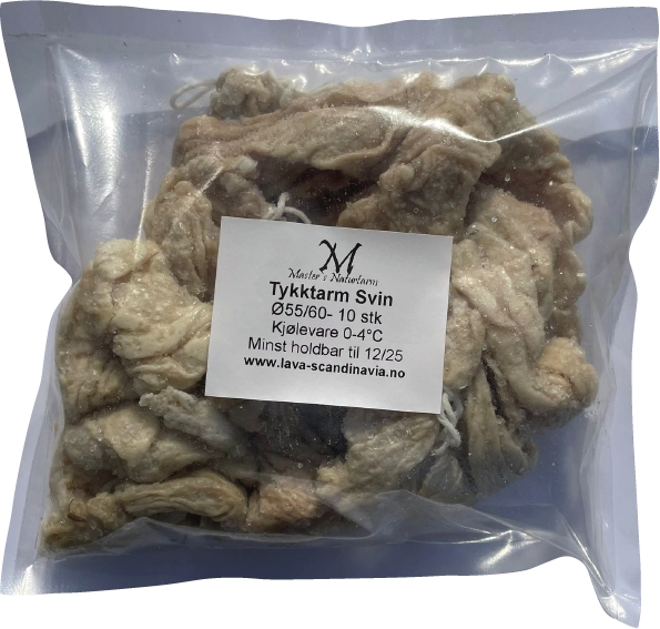 Tarmene er saltet og av ypperste kvalitet. Størrelsen på Tarmene er Ø55/60.