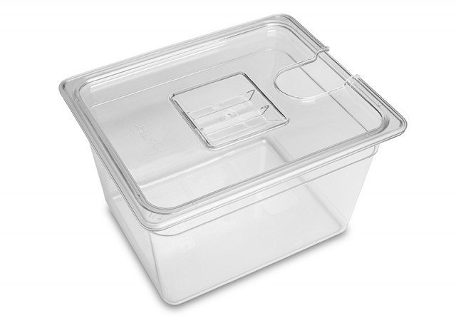 SousVide beholderen er laget i gjennomsiktig varmebestandig plast. Noe som fungerer perfekt i kombinasjon med Lavide Sous Vide Sirkulator og nesten hvilken som helst annen SousVide Sirkulator av lignende utførelse på markedet.